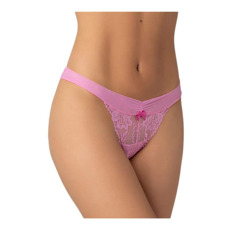String από ελαστική δαντέλα και φάσα από διάφανο τούλι από πάνω και πίσω. Το τούλι στο κέντρο κάνει μια παιχνιδιάρικη σουρίτσα κι έχει ένα σατέν φιογκάκι. Έχει βαμβακερό καβαλάκι που προσφέρει καλύτερη υγιεινή προστασία. Σύνθεση : 85% Πολυαμίδιο, 15% Ελασ