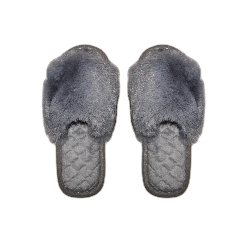 FMS Γυναικείες Παντόφλες Γούνινες Ανοικτές
