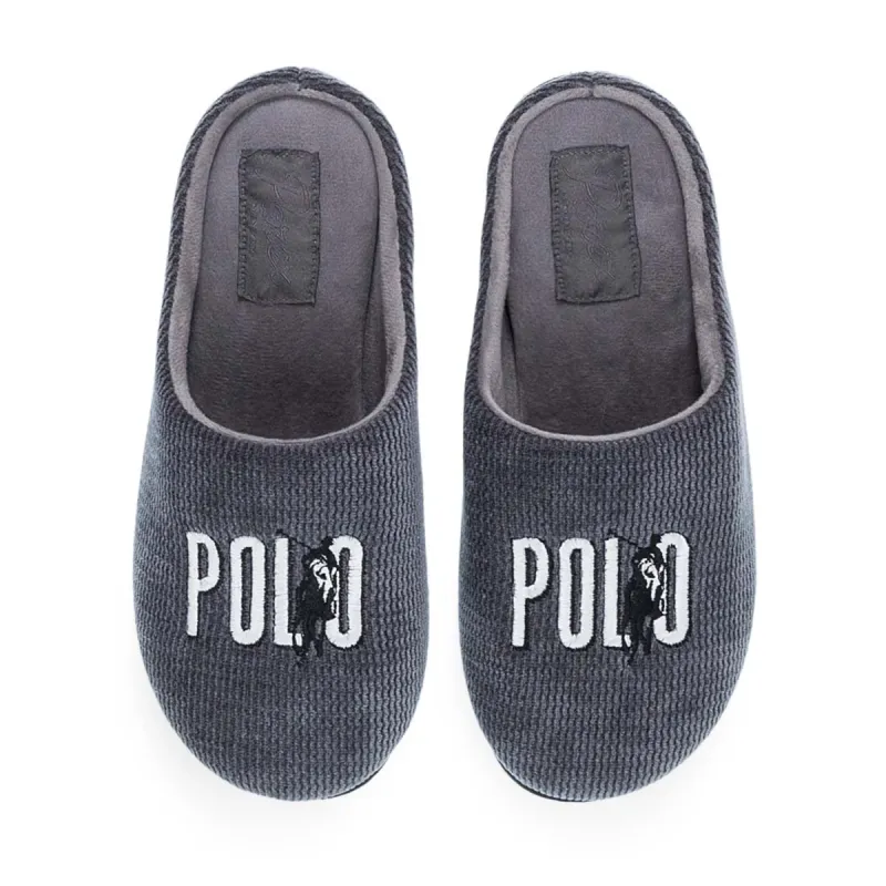 Ανδρικές Παντόφλες Polo σε Γκρι - Κλασικό στυλ και άνεση σε κάθε βήμα! Οι ανδρικές παντόφλες Polo σε γκρι χρώμα, με το χαρακτηριστικό λογότυπο κεντημένο στο επάνω μέρος, συνδυάζουν κομψότητα και πρακτικότητα. Κατασκευασμένες από μαλακό ύφασμα και με ανατομική σόλα, προσφέρουν στήριξη και ξεκούραση όλη την ημέρα. Ιδανικές για τον άνδρα που εκτιμά την ποιότητα και το διαχρονικό design στην καθημερινότητά του.