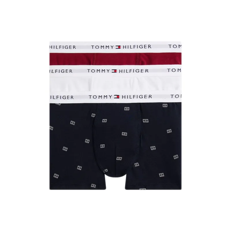 Παιδικά μποξεράκια Tommy Hilfiger σε πρακτική συσκευασία 3 τεμαχίων. Κατασκευασμένα από απαλό βαμβακερό ύφασμα με ελαστάνη, προσφέρουν άνεση και ελευθερία κινήσεων όλη μέρα. Διαθέτουν ελαστική μέση με το χαρακτηριστικό λογότυπο Tommy Hilfiger και συνδυασμό χρωμάτων λευκό, μπορντό και μπλε με μοτίβο logo.Ιδανικά για καθημερινή χρήση, με μοντέρνο design και σταθερή εφαρμογή.