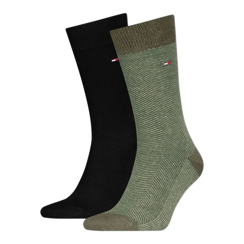 Ανδρικές κάλτσες Tommy Hilfiger σε σετ 2 ζευγαριών, σχεδιασμένες για κομψότητα και καθημερινή άνεση. Κατασκευασμένες από βαμβακερό ύφασμα υψηλής ποιότητας με προσθήκη ελαστάνης για ελαστικότητα και τέλεια εφαρμογή. Κάθε ζευγάρι φέρει το διακριτικό λογότυπο Tommy Hilfiger στο πλάι, προσδίδοντας διακριτική πολυτέλεια και στυλ.Το σετ περιλαμβάνει ένα μονόχρωμο μαύρο ζευγάρι και ένα ζευγάρι με μοτίβο ψαροκόκκαλο σε χακί-πράσινη απόχρωση, ιδανικά για κάθε εμφάνιση — από business έως casual.Σύνθεση: 77% Βα