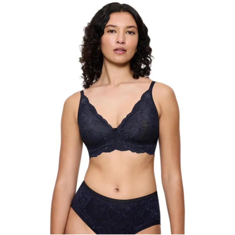 Το Triumph Amourette Charm Padded Bra σε βαθύ μπλε (00JO) είναι ένας κομψός και θηλυκός στηθόδεσμος που συνδυάζει πολυτελή δαντέλα με άνεση και φυσικό κράτημα. Ανήκει στη σειρά Amourette Charm, γνωστή για το ρομαντικό της ύφος και τη φίνα αισθητική της.Οι ελαφρώς ενισχυμένες cups αγκαλιάζουν απαλά το στήθος, προσφέροντας φυσική στήριξη και όμορφο σχήμα, ενώ η διάφανη δαντέλα με floral μοτίβο χαρίζει μια κομψή και αισθησιακή πινελιά. Ο σχεδιασμός χωρίς μπανέλα εξασφαλίζει άνεση όλη μέρα, ιδανικός για