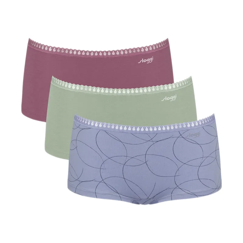 Το Sloggi Basic+ Short 3Pack σε χρώμα V008 (Assorted Green/Rose/Lavender Print) συνδυάζει κομψότητα και απόλυτη άνεση στην καθημερινή σας επιλογή εσωρούχων. Κατασκευασμένα από βαμβάκι υψηλής ποιότητας με Lycra®, προσφέρουν απαλή αφή, άψογη εφαρμογή και διαπνοή του δέρματος για όλη την ημέρα.Το σετ περιλαμβάνει τρεις αποχρώσεις — ένα σε σάπιο μήλο, ένα σε απαλό πράσινο και ένα με μοτίβο σε λιλά τόνο, ιδανικό για κάθε διάθεση και εμφάνιση.