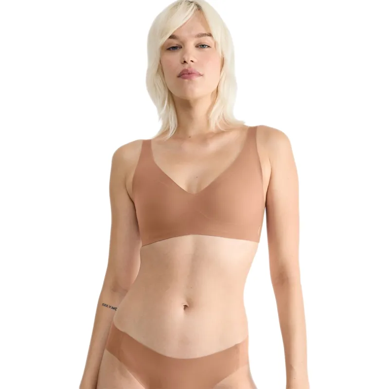 Το Sloggi Zero Feel Bralette σε χρώμα 00CM (Cocoa Beige) συνδυάζει απαλότητα, άνεση και ελευθερία κινήσεων σε ένα από τα πιο ελαφριά bralettes της σειράς Zero Feel. Κατασκευασμένο από εξαιρετικά μαλακό microfibre ύφασμα με τεχνολογία 360° stretch, εφαρμόζει τέλεια στο σώμα χωρίς ραφές, μπανέλες ή ετικέτες, προσφέροντας αίσθηση “δεύτερου δέρματος”.Η V λαιμόκοψη και τα αφαιρούμενα cups προσφέρουν φυσικό σχήμα και ελαφριά στήριξη, ενώ τα κοψίματα λέιζερ εξασφαλίζουν invisible εφαρμογή κάτω από τα ρούχα.