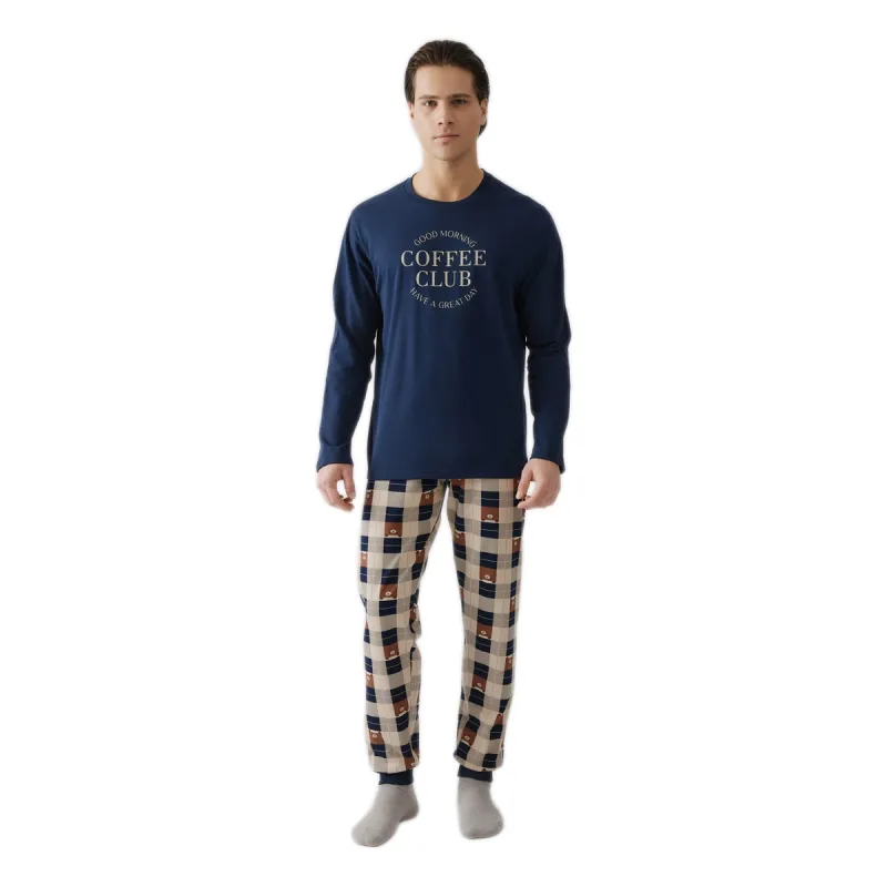 Minerva Ανδρική Πυτζάμα Φούτερ Εμπριμέ Coffee