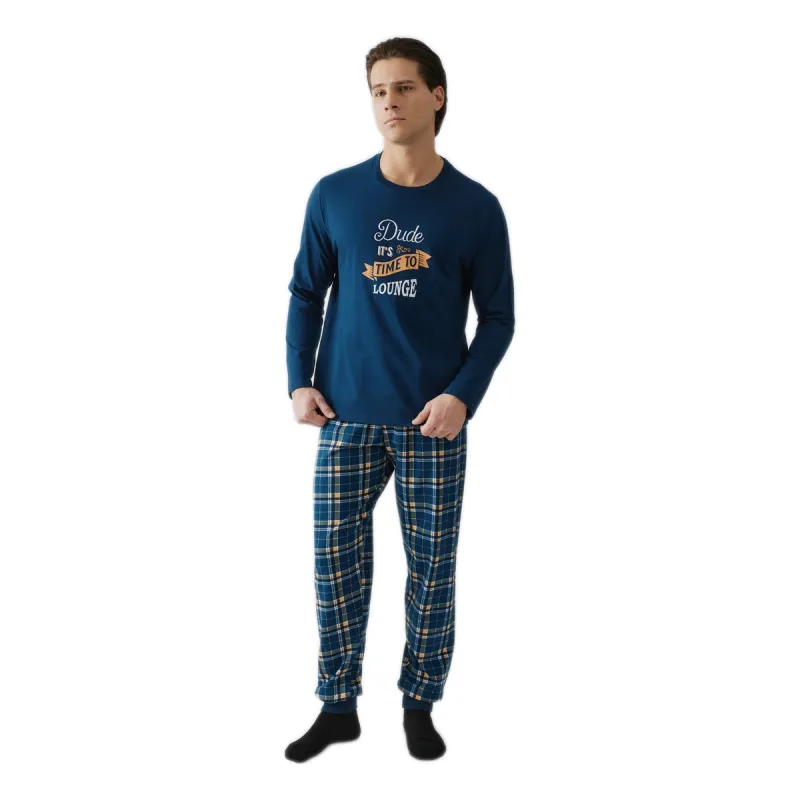 Αυτή η πιτζάμα έχει έναν χαλαρό, πρωινό χαρακτήρα χάρη στο τύπωμα Coffee Club. Το μπλε μπλουζάκι είναι μοντέρνο και ευκολοφόρετο. Το μπεζ–μπλε καρό παντελόνι προσθέτει cozy ύφος. Είναι τέλεια για όσους αγαπούν άνετες στιγμές στο σπίτι με στιλ.