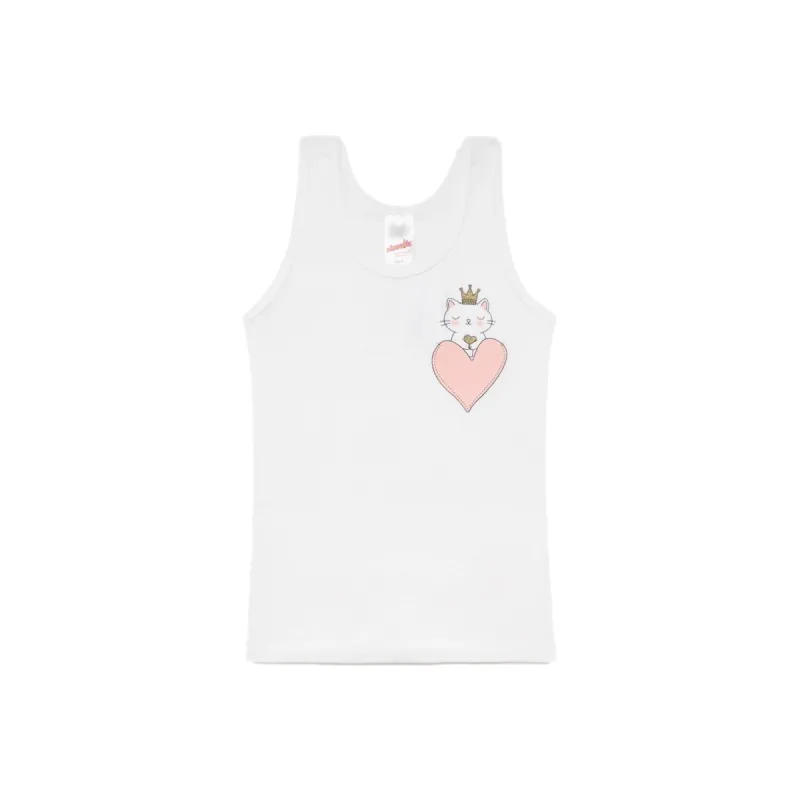 Ένα χαριτωμένο αμάνικο της Minerva που συνδυάζει άνεση και γλυκό παιδικό στιλ για κάθε στιγμή της ημέρας. Το απαλό βαμβακερό ύφασμα αγκαλιάζει απαλά το δέρμα και προσφέρει φυσική ελευθερία κινήσεων. Το παιχνιδιάρικο σχέδιο με τη μικρή γατούλα και την καρδιά προσθέτει μια τρυφερή πινελιά που λατρεύουν τα παιδιά. Ιδανικό για καθημερινή χρήση, είτε ως εσωρουχικό είτε ως άνετο καλοκαιρινό top.