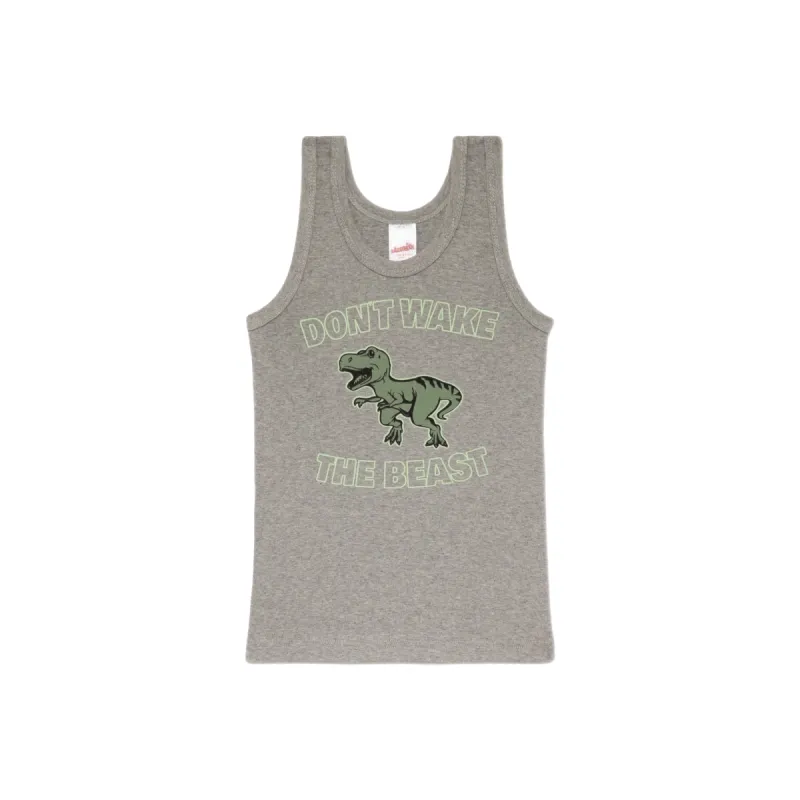 Ένα άνετο παιδικό αμάνικο που χαρίζει ελευθερία κινήσεων και παιχνιδιάρικη ενέργεια. Το χαριτωμένο σχέδιο με τον δεινόσαυρο δίνει έναν δυναμικό χαρακτήρα σε κάθε καλοκαιρινή εμφάνιση. Το απαλό βαμβακερό ύφασμα προσφέρει δροσιά και άνεση όλη μέρα. Ιδανική επιλογή για παιχνίδι, βόλτες και καθημερινή χρήση.