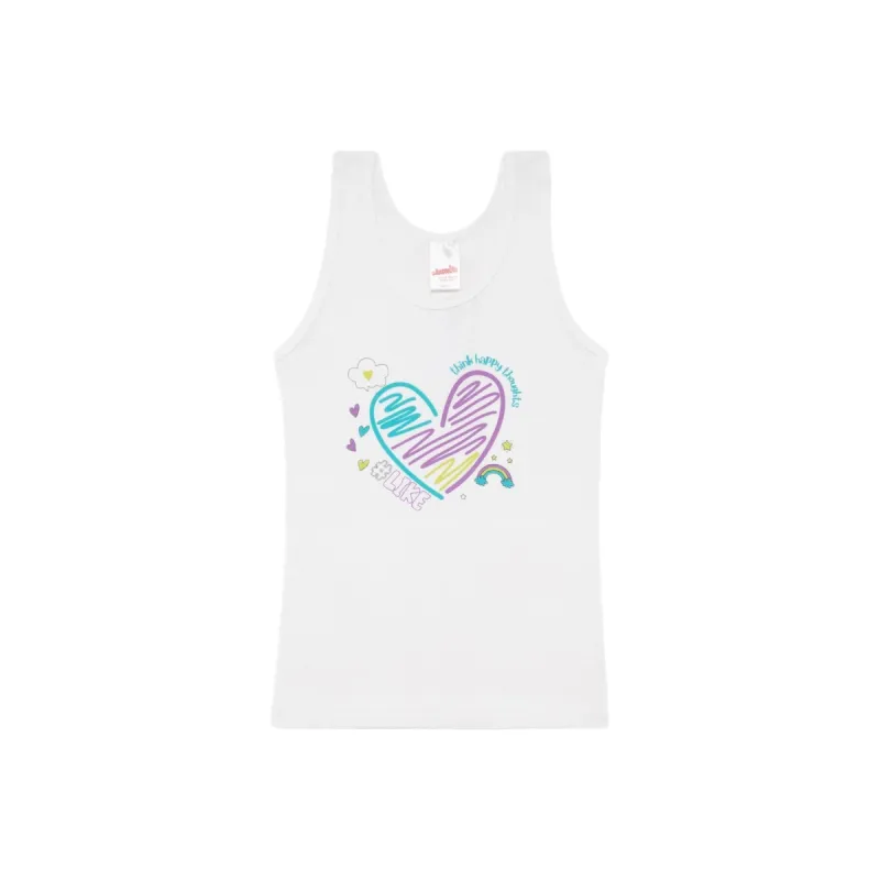 Μια χαρούμενη αμάνικη μπλούζα που γεμίζει το καλοκαίρι με χρώμα και παιχνιδιάρικη ενέργεια. Η μεγάλη πολύχρωμη καρδιά στο μπροστινό μέρος συνοδεύεται από μικρά σχέδια και θετικά μηνύματα που δίνουν ανάλαφρη, feel-good διάθεση. Το λευκό ύφασμα κρατά το look φρέσκο και φωτεινό, ιδανικό για ζεστές μέρες. Τέλεια επιλογή για κοριτσάκια που αγαπούν τις πολύχρωμες λεπτομέρειες και το ανεμελιάρικο στυλ.