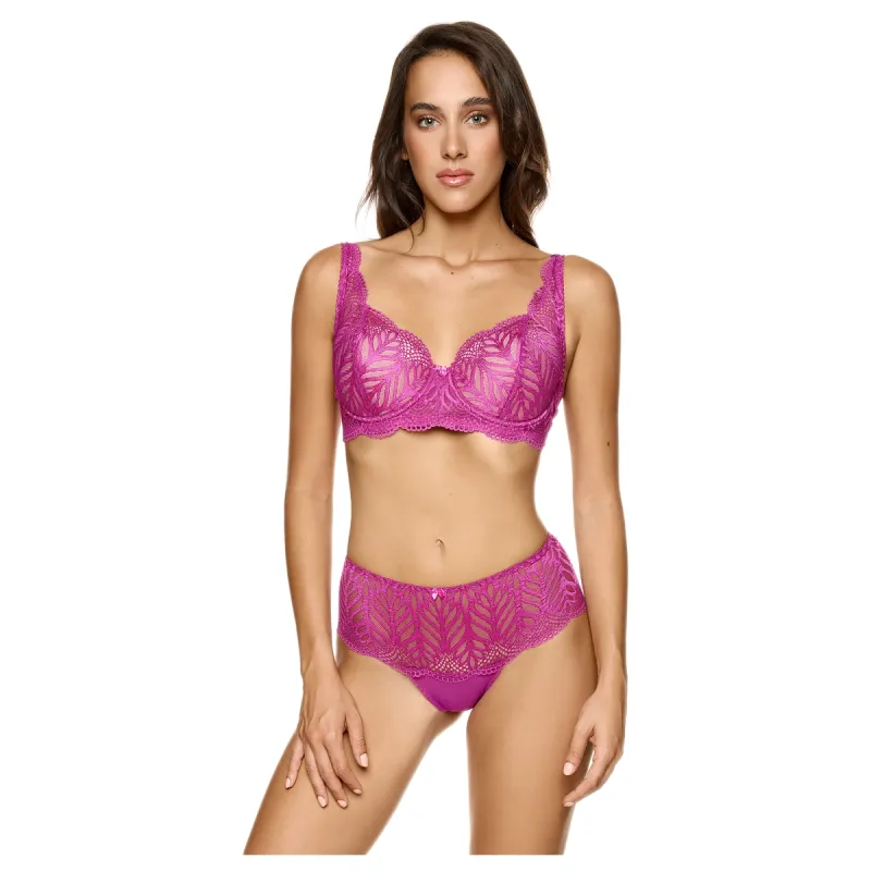 Κομψό και άνετο γυναικείο σουτιέν από φίνα δαντέλα με διακριτική διαφάνεια, σχεδιασμένο για φυσική στήριξη και θηλυκή εμφάνιση. Η μπανέλα προσφέρει σταθερό κράτημα, ενώ η ελαφριά κατασκευή χωρίς ενίσχυση αγκαλιάζει απαλά το σώμα, χαρίζοντας φυσικό σχήμα. Το έντονο φούξια χρώμα προσθέτει μοντέρνο και εντυπωσιακό χαρακτήρα. Ιδανικό για καθημερινή χρήση αλλά και για πιο ιδιαίτερες στιγμές. Συνδυάζεται άψογα με brazil ή string της ίδιας σειράς.