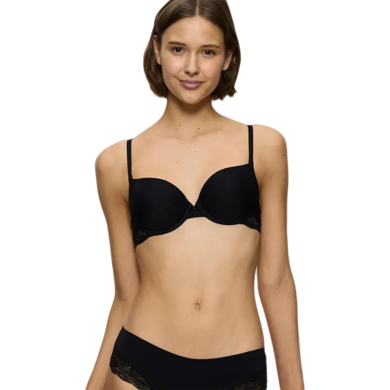 Κομψό και διαχρονικό γυναικείο σουτιέν με μπανέλα, σχεδιασμένο για άριστη στήριξη και όμορφο σχήμα στο στήθος. Διαθέτει λεία ενισχυμένα cup (push up) που αναδεικνύουν φυσικά το μπούστο, ενώ η διακριτική δαντέλα στο κάτω μέρος προσθέτει θηλυκό χαρακτήρα. Οι ρυθμιζόμενες τιράντες εξασφαλίζουν άνετη και σωστή εφαρμογή, καθιστώντας το ιδανικό τόσο για καθημερινή χρήση όσο και για πιο ιδιαίτερες εμφανίσεις. Το μαύρο χρώμα προσφέρει κομψότητα και ευκολία στον συνδυασμό.