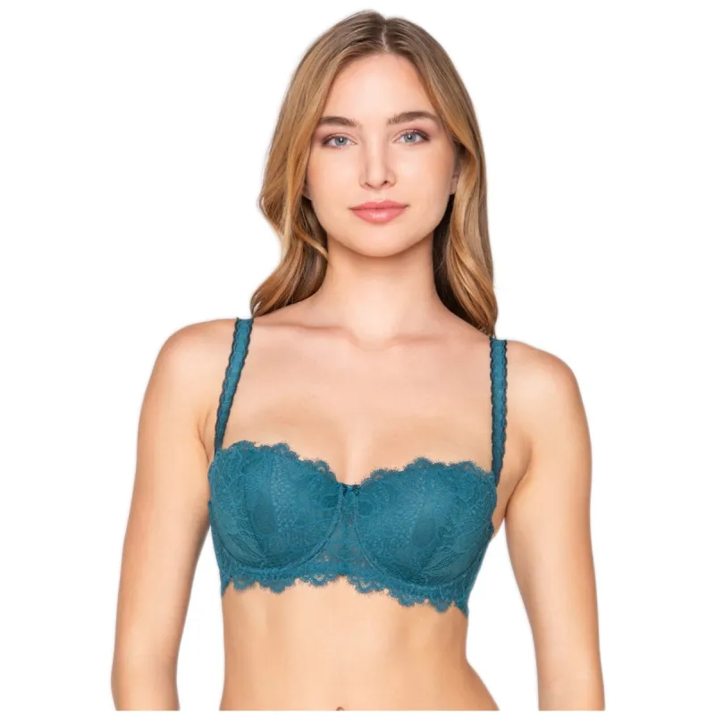 Κομψό γυναικείο σουτιέν σε εκλεπτυσμένη πετρόλ απόχρωση, κατασκευασμένο από φίνα δαντέλα που προσδίδει θηλυκή και sophisticated αισθητική. Η μπανέλα προσφέρει σταθερή στήριξη και όμορφο φυσικό σχήμα στο στήθος, ενώ οι λεπτές τιράντες εξασφαλίζουν άνεση και άψογη εφαρμογή. Ιδανικό για καθημερινή χρήση αλλά και για ιδιαίτερες εμφανίσεις, συνδυάζεται τέλεια με το αντίστοιχο σλιπ της ίδιας σειράς, δημιουργώντας έτσι ένα ολοκληρωμένο και κομψό σετ.