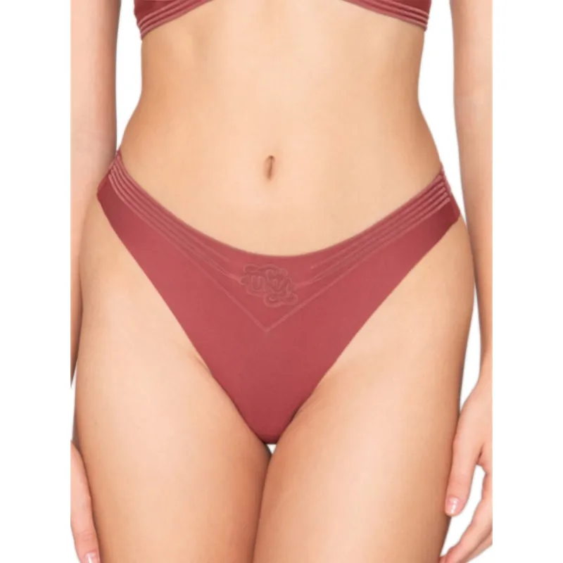 Γυναικείο εσώρουχο με μπραζίλ κόψιμο με ενσωματωμένη σιλικόνη για σταθερό κράτημα και άψογη εφαρμογή. Η seamless κατασκευή και το εξαιρετικά απαλό, ελαστικό ύφασμα προσφέρουν αίσθηση second skin και επομένως, αόρατο αποτέλεσμα κάτω από τα ρούχα. Κομψό και άνετο, ιδανικό για καθημερινή χρήση αλλά και για εφαρμοστά σύνολα.