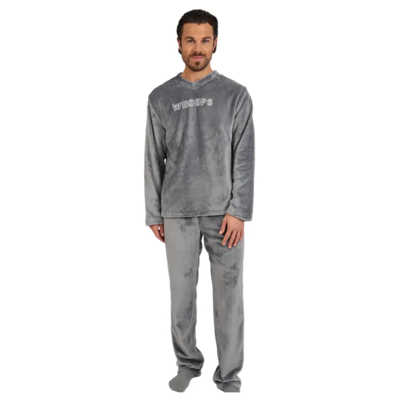 Mario Uomo Ανδρική Πυτζάμα Fleece με V Λαιμόκοψη και σχέδιο Whoops