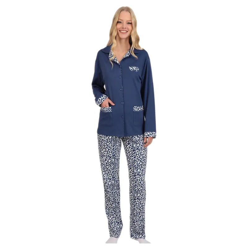 | Lydia Creations Women's Pyjamas Button-Up with Collar and Animal Print Pants | Lions Square | 19 Dedalou St |