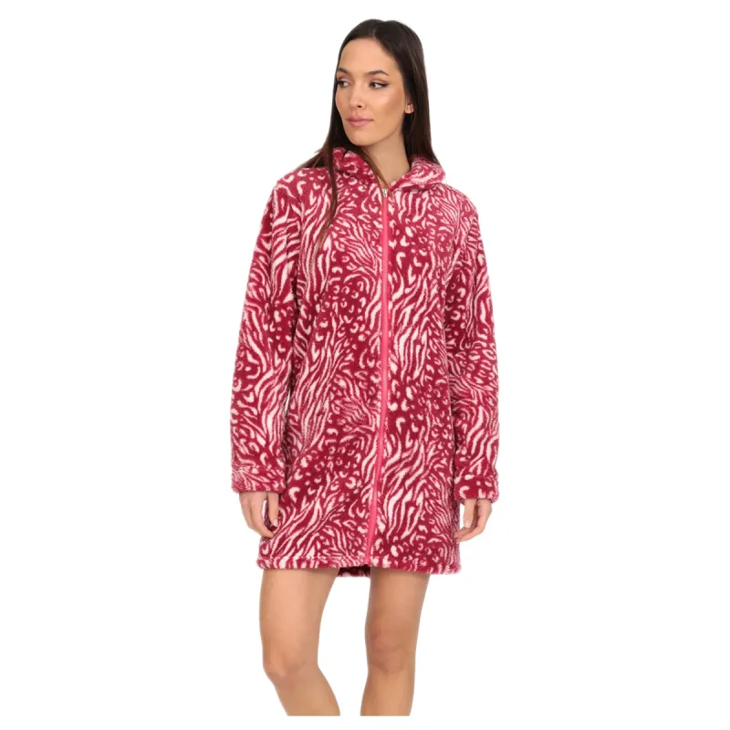 Lydia Creations Women's Robe Fleece with Hoodie and Zipper and Animal Print